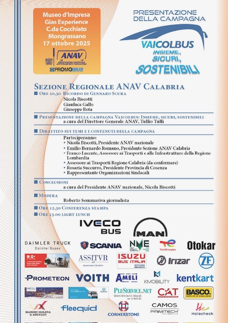 Il prossimo 17 ottobre a Mongrassano (CS) sarà presentata la campagna Vaicolbus: Insieme, sicuri, sostenibili”, in un evento promosso da ANAV e organizzato con la Sezione Anav Calabria.