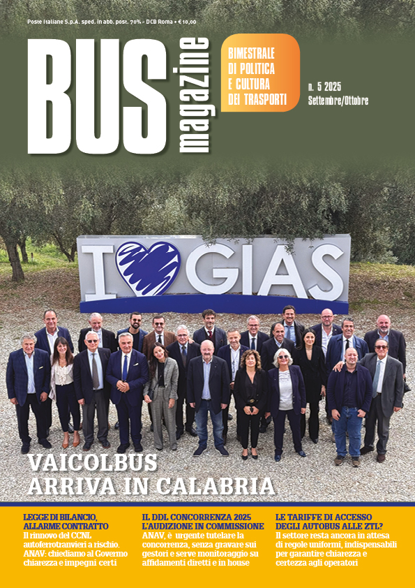 È disponibile sul sito www.anav.it il nuovo numero di BUS MAGAZINE, il bimestrale di politica e cultura dei trasporti a cura di ANAV, con analisi, approfondimenti e notizie sui principali temi del settore.
