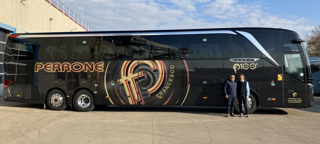 A suggellare questo importante traguardo arriva il nuovo Setra S 517 HDH, consegnato da Daimler, che sfoggia una livrea esclusiva dedicata al centenario: un omaggio elegante alla storia, all’innovazione e alla passione che da un secolo accompagnano Perrone Bus lungo le strade d’Italia e d’Europa.