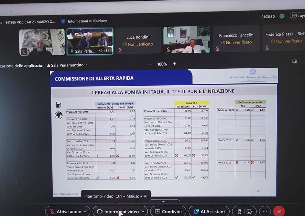 Nel corso dell’incontro, il Ministero ha illustrato l’andamento aggiornato dei prezzi dei prodotti energetici e dell’inflazione, evidenziando anche i possibili impatti del conflitto in Medio Oriente sull’approvvigionamento di petrolio e materie prime strategiche.