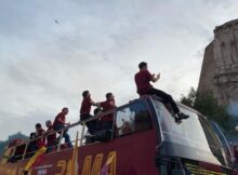 La Roma ha festeggiato la vittoria in Conference League con due bus scoperti che, con calciatori, tifosi e coppa a bordo, sono partiti dal Circo Massimo per sfilare