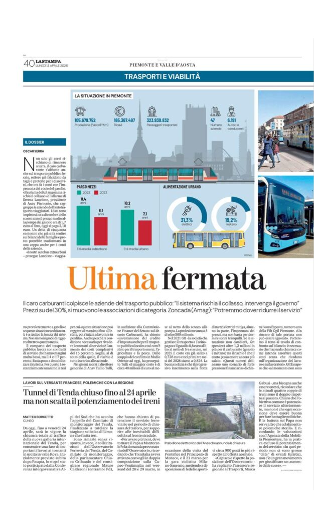 Serena Lancione su La Stampa: “Trasporto pubblico locale al limite: servono risposte subito”